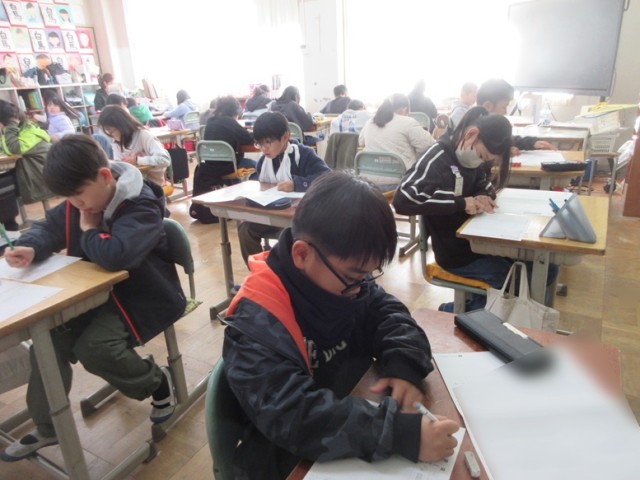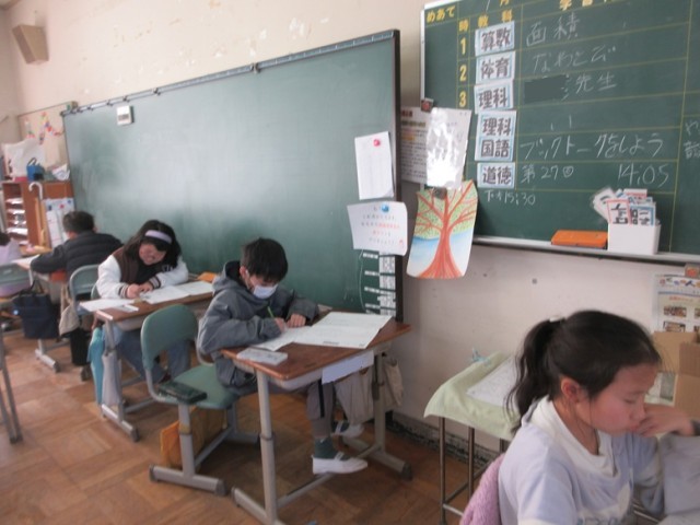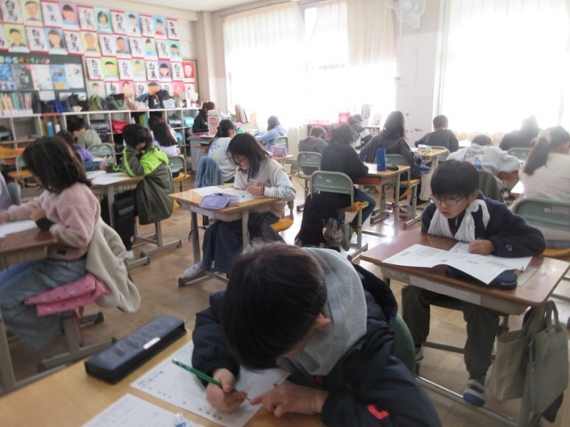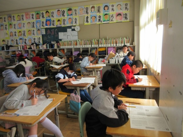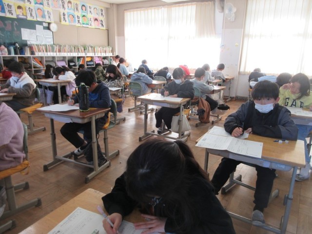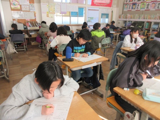 4年生は、問題用紙と解答用紙が別々となりました。すぐそばに解答欄の( )や四角があるわけではないので、解答するのにも時間がかかったと思います。みんな、集中して取り組んでいます。
