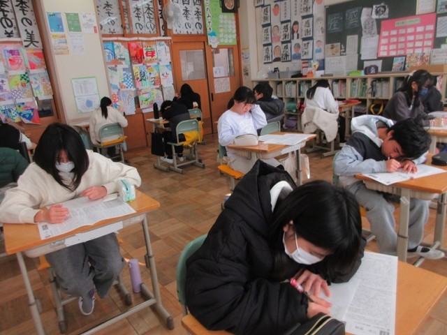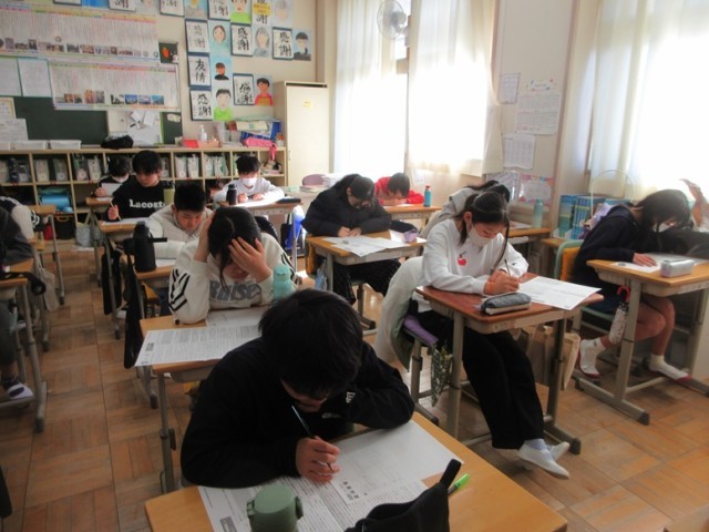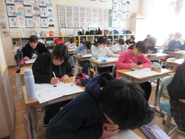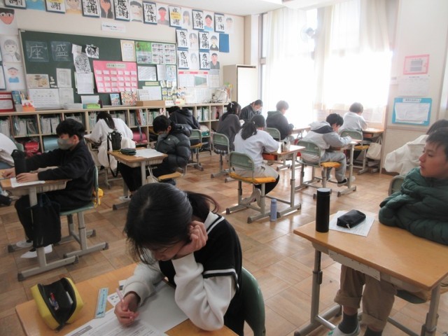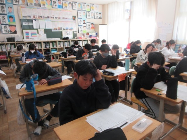 6年生は、小学校生活最後の定着度テストでした。「二段落構成で、百十字以上、百三十字以内で句点や漢字などに気をつけて説明文を加えてかきましょう」という問題もありました。中学進学に向け、テストに慣れることも大切ですね!