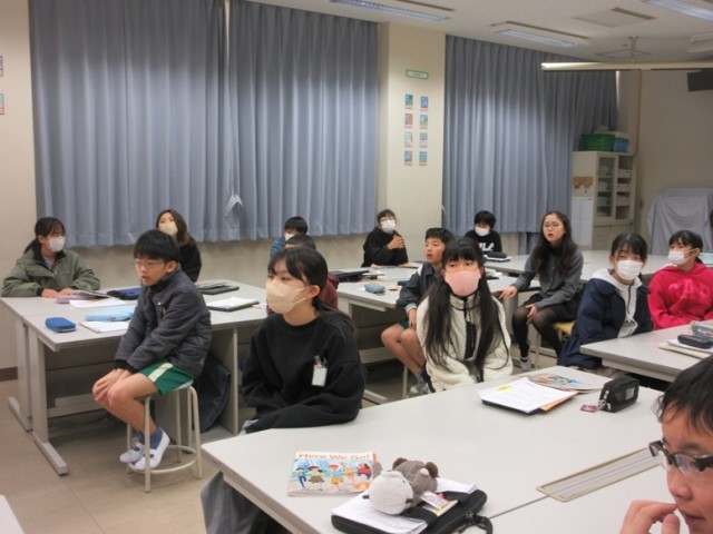 2組では、英語の学習です。sea、river、mountain、lakeなど地形や自然に関する単語を1つ1つ丁寧に学習しています。