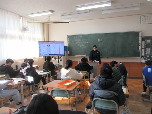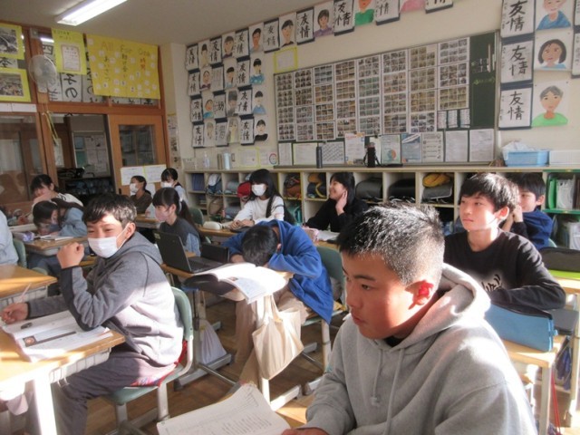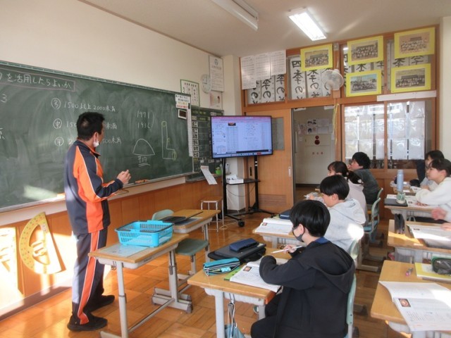 2,3組は、算数「データの活用」の学習です。代表値、平均値、中央値などデータによってどの味方を活用すればよいのかをみんんで考えています。
