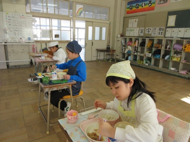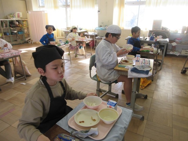 給食の準備をして、7組の子たちも給食をおいしそうにいただいています。3学期も感謝の気持ちをもって給食をいただきましょう!