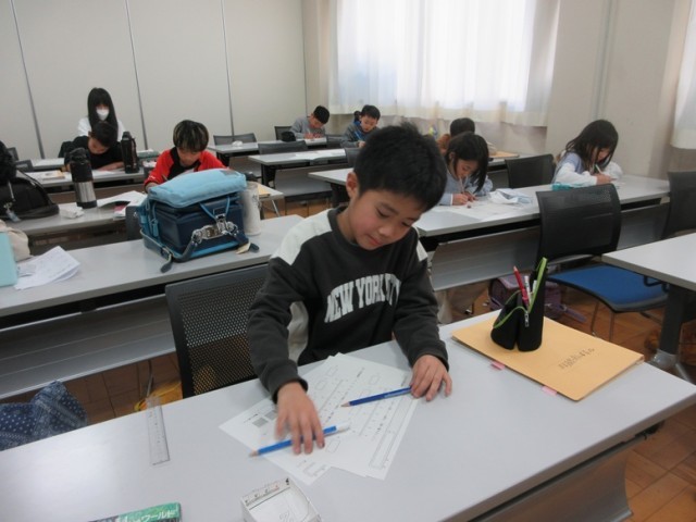 新年初の3年生、ひまわり学習教室が行われました。今日は、小数と整数、小数の表し方(数直線)、小数のたし算などのプリントに前向きに取り組みました。
