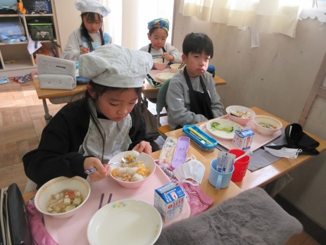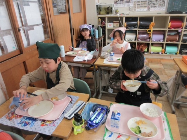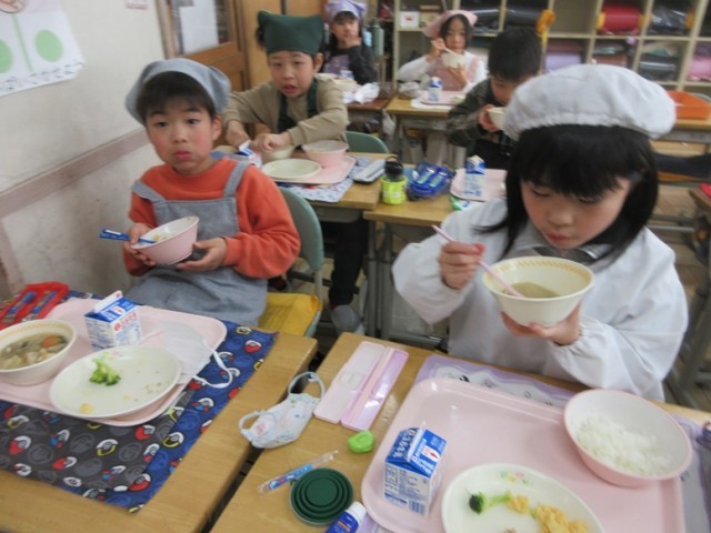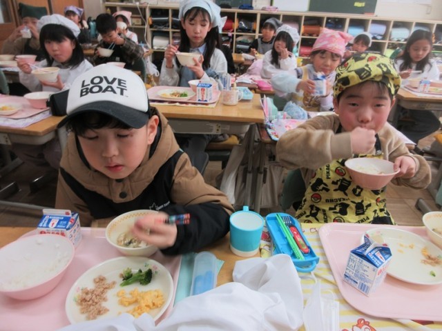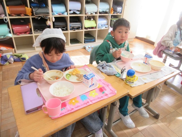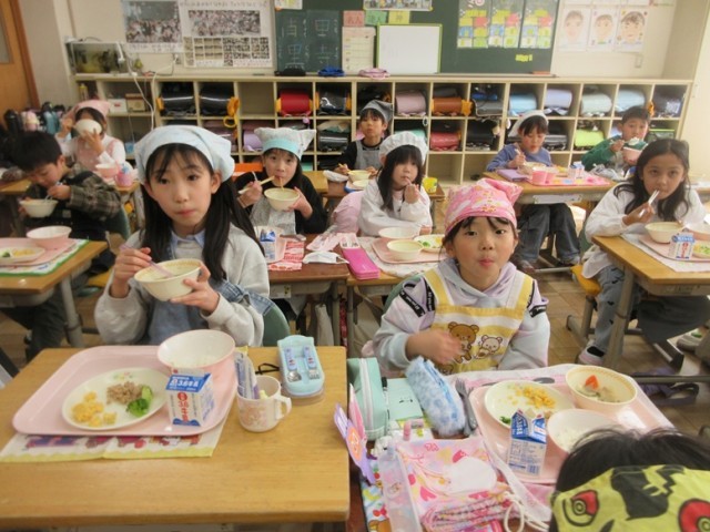 2年2組のみんなもおいしく給食をいただいています。四小の傾向として、お野菜が苦手な子が多いですが、2組の子たちは残さず食べられたかな?たくさん食べて、たくさん運動して、たくさん勉強して、全員笑顔の第四小にしましょう!