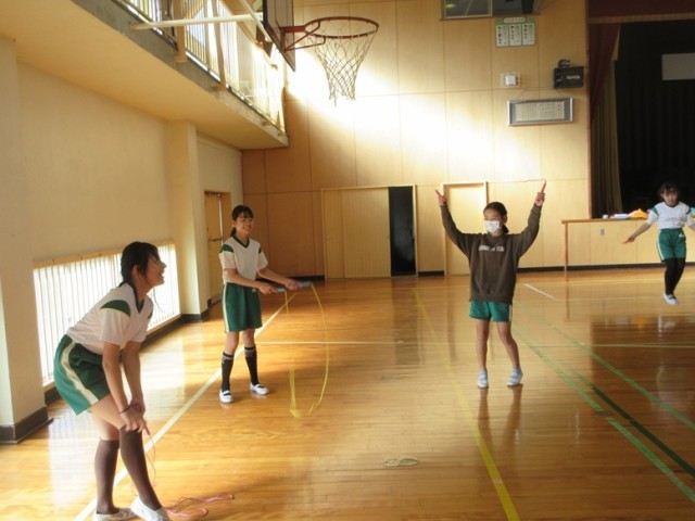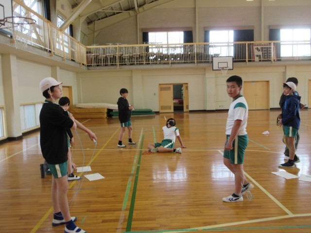 2組は、体育館体育で、縄跳びを行いました。縄跳びカードに取り組みながら、先生や友達とアドバイスをし合いながら進めています。