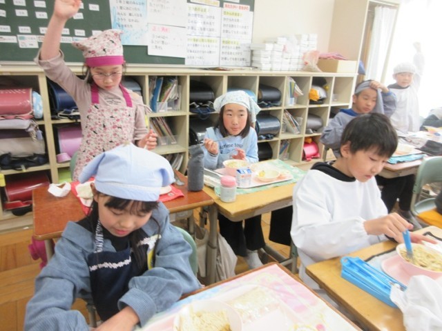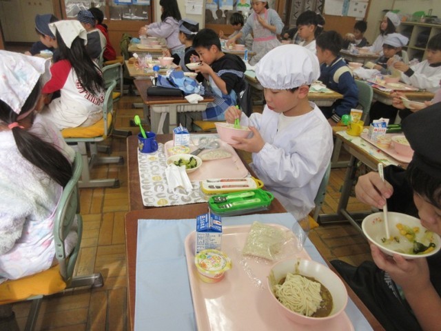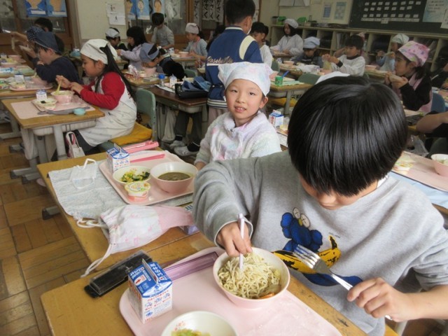 1/20(火)人気のソフトめん! 給食の様子 3年生 その2