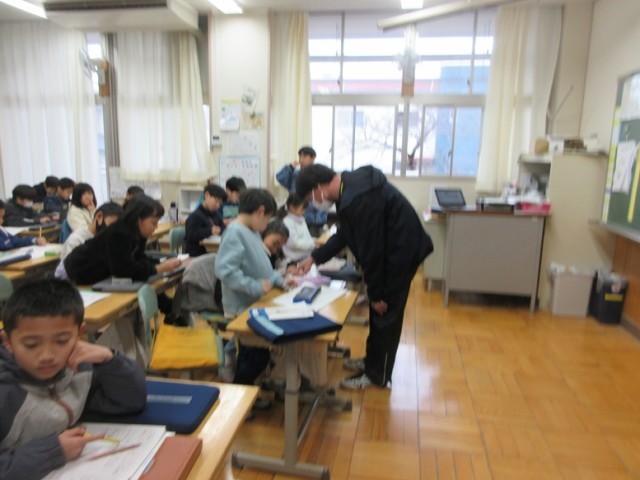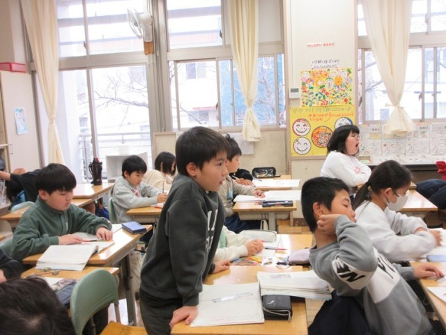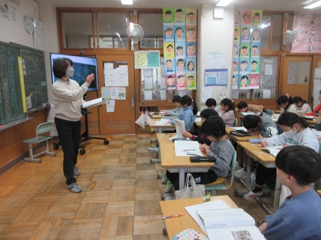 3年1組は、国語「カミツキガメは悪者か」の学習です。「カミツキガメは悪くない。でも…」と、「でも~」という部分について、考え発表しています。