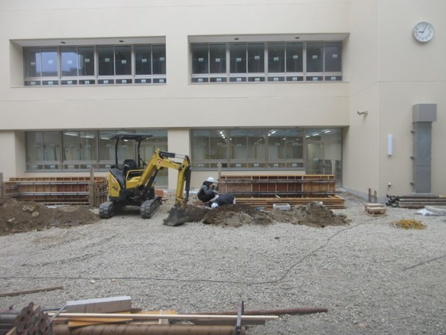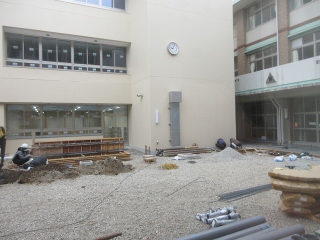 今日から気温がとても寒くなるという天気予報ですが、外の作業が進んでいます。見える範囲では児童玄関前、中庭の手洗い場などの工事が進んできました。これからさらに寒くなるようですが、どうぞよろしくお願いします。