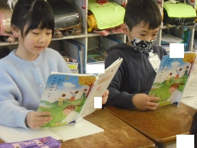 「。」までの一文を順番に読んでいました。はっきりとした声で、ていねいによい姿勢で読むことができました。