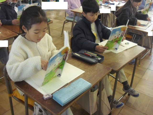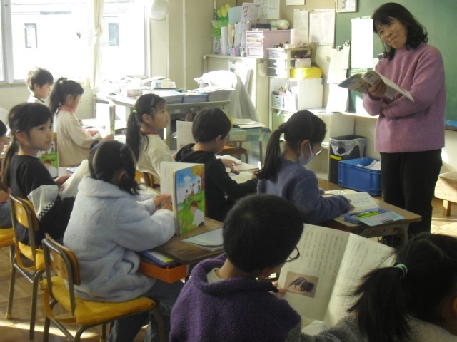 1年生は国語「子どもをまもるどうぶつたち」の学習です。
