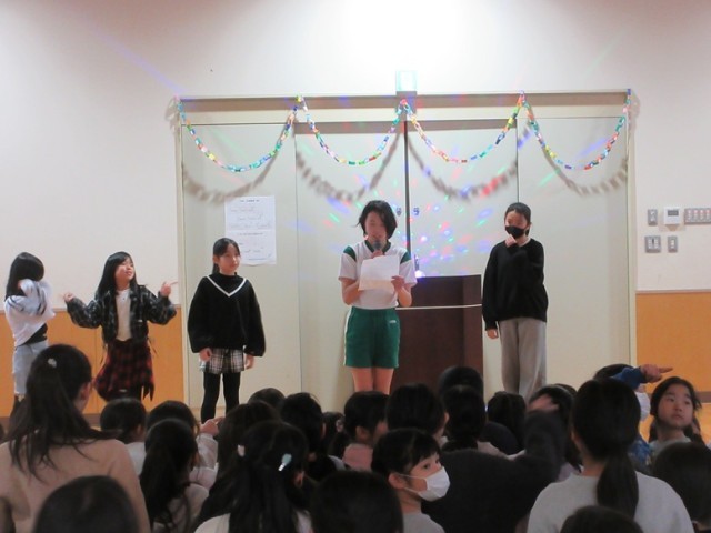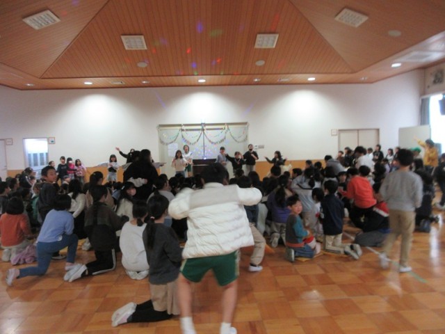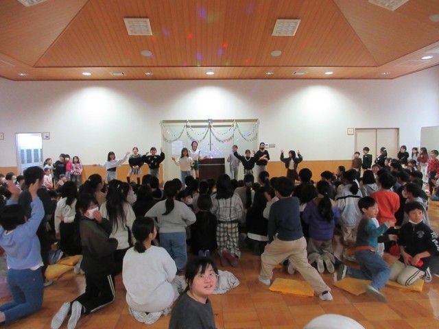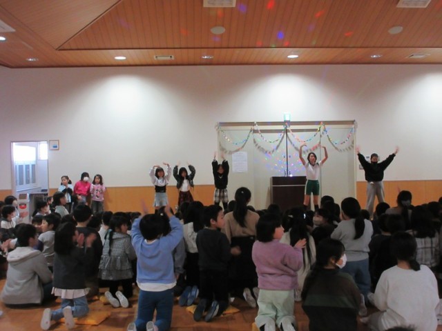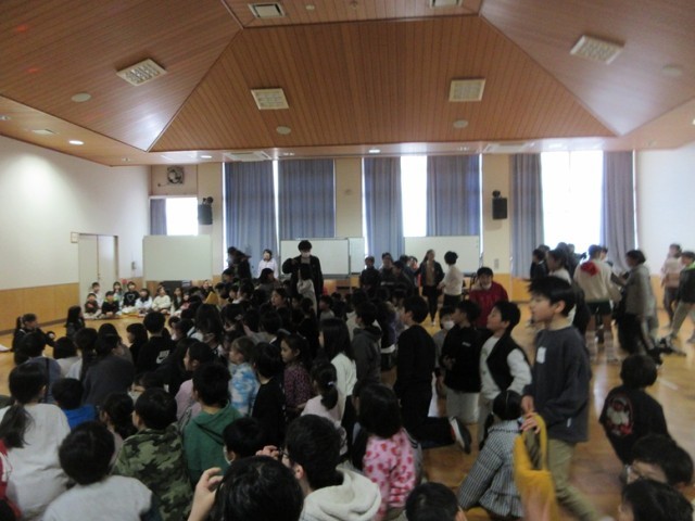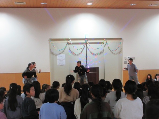 多目的ホールは、さながらアイドルグループのライブ会場のような盛り上がりです!今日の昼休みにダンスクラブの発表会があり、多くの子どもたちが多目的ホールに集まりました。曲に合わせて踊るダンスクラブの子たちに、拍手や手作りペンライト(紙で作ってあるので光りません!)で盛り上げます。最後は、全員でナルトダンスを踊って会場一体となって終わりました。
