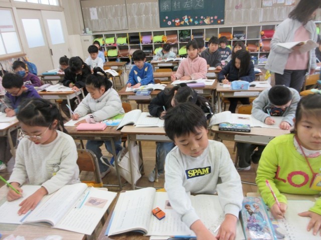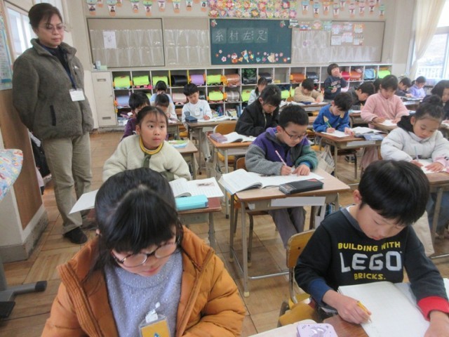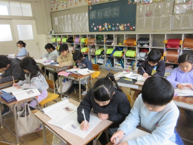 1年1組は、国語「子どもをまもるどうぶつたち」の学習です。「オオアリクイはどのようなちえをつかい、てきから子どもをまもっているのかな?」という学習課題について考えていきました。