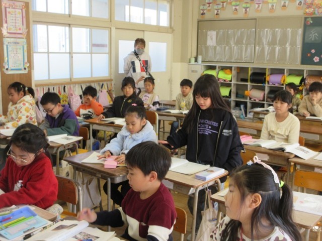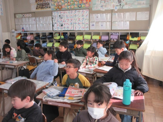 1年1組は、国語「子どもまもるどうぶつたち」の学習です。昨日の続きですが、オオアリクイの知恵についてよりくわしく学んでいます。
