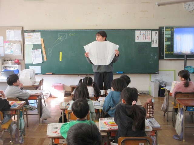 2組は、図工「オリジナルのたこづくり」です。浜松まつりのたこあげの様子を見て、あんなふうに空高く飛ぶ凧ができるといいな~という思いを持ちました。真っ白な凧にどんな絵や模様を描いたりするのか楽しみですね。