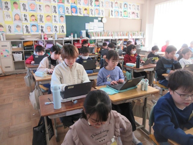 2組は、社会科テストです。終わった子から、桃鉄教育版に取り組みました。