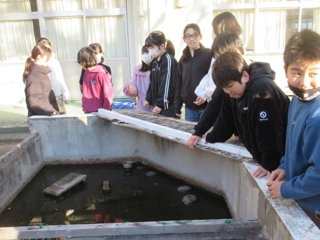 今日は、これまで園芸委員会の子たちを中心に大切に飼っていたカメの引っ越しの日です。朝から6年生の姿が池の周りにあり、カメとの別れを惜しんでいました。いつ頃、この池に来たのかも分からないミシシッピアカミミガメは、条件付特定外来生物であるため、許可なく川や池に放したり、移動させたりすることはできません。そのため、今日専門の機関によって引っ越しが行われ、第二の人生を歩むこととなりました。引っ越し先でも長生きしてほしいですね。