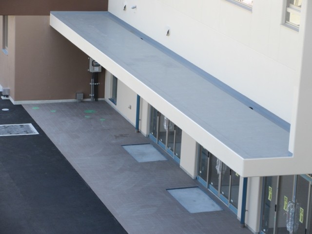 児童玄関のひさし付近の塗装や玄関前の舗装などもできあがってきました。いよいよ引き渡しの日も近づいてきています。