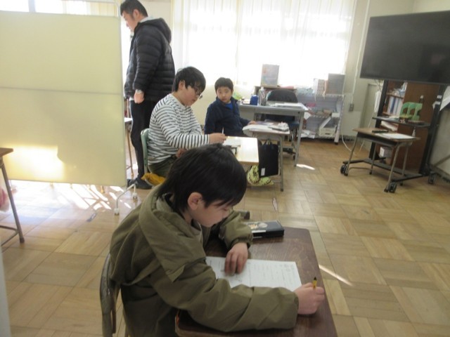 2組は、理科「磁石のはたらき」の学習です。これまで学習した内容を確かめるプリントに取り組んでいます。