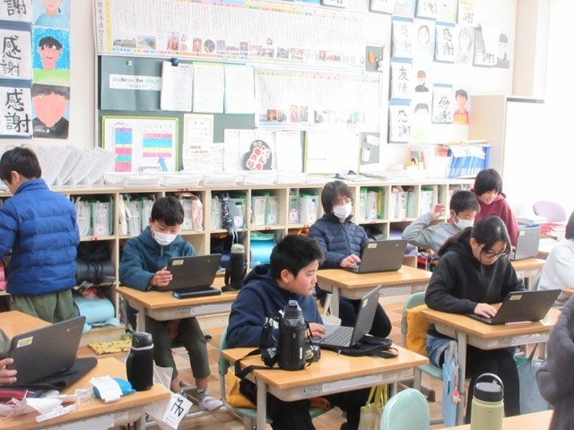 6年1組は、総合学習で「卒業レポート」に取り組んでいます。小学校生活を振り返り、キャンバでまとめています。どんなことが合う頭に浮かんできたかな?
