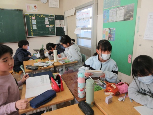 5年生は、1,2組とも社会科で「防災」の学習をしています。1組では、調べたことを友達に発表し合うジグソー学習をしています。友達から自分の調べていないことを聞くことも大切な学習ですね。