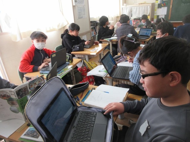 2組は、グループごと「災害の仕組み」「被害」「対策」など、視点を決めて調べ学習を進めています。学習したことを、実際に災害が起こった時に役立てられるといいですね。