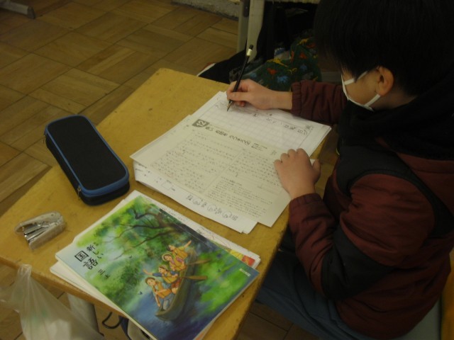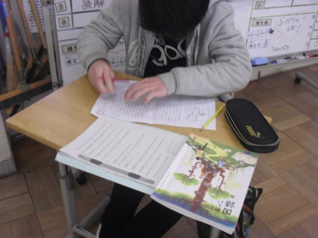 国語の時間です。文章を目で見て書き写す「視写」の学習です。