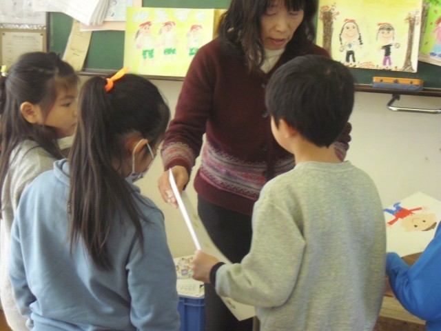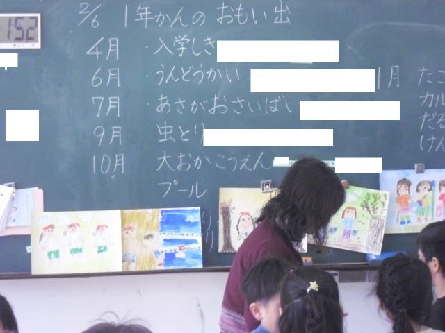 1年生は図工「1年間のおもいで」の学習です。