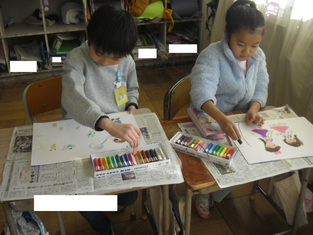 絵に表しました。これまでの楽しいできごとを思い出しながら描いていました。
