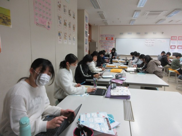 6年1組は、英語「ALL ABOUT ME」の学習です。まずは、カフートで動物の英語表記についてウォーミングアップしています。