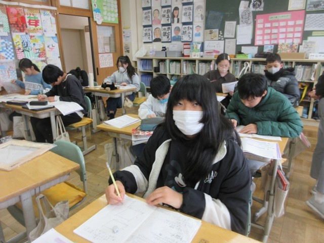 3組は、算数「中学への架け橋」の学習で、三角形、台形、円の面積などの復習や発展問題に取り組んでいます。