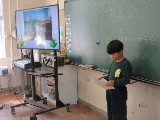 今日は、本年度最後の授業参観・懇談会でした。どの学年も1年間の集大成を緊張しながらも堂々と発表していたと思います。こんなにできるようになったんだよと自信満々に発表している子供たちの目はキラキラと輝いて見えました。特に6年生は「小学校卒業」という大きな節目を迎えます。各クラスでの卒業レポートの発表はもちろんのこと、多目的ホールで演奏した「Carrying Happiness」は、6年生にとって思い入れの強い曲です。きっとその音楽と共に四小の6年間の思いではいつになても印象深いものになることと思います。