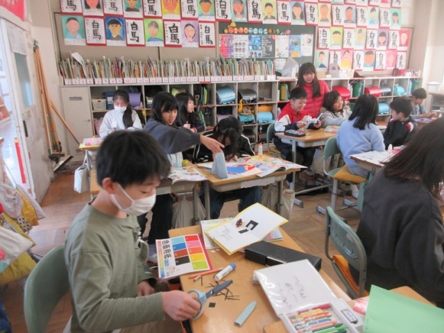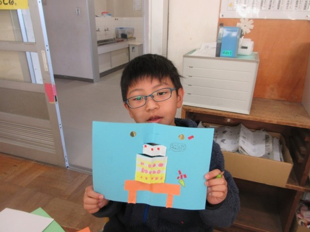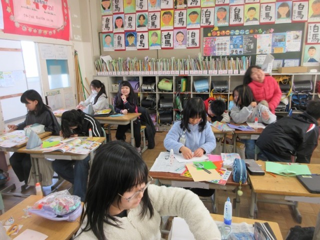 4年1組は、図工「幸せを運ぶカード」の学習です。みんな、思い思いのアイデアを込め、渡す人のことを考えながら作っています。そんな中、「先生!今日、妹の誕生日なんだけど、このカードまだできないから渡せないんだ」という子がいました。なんともほっこりする温かい言葉に感動しました。妹さんもこのカード渡されたらきっと喜んでくれるでしょうね!