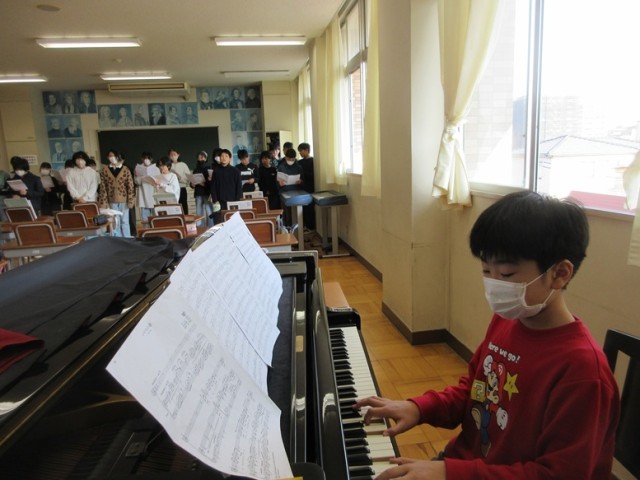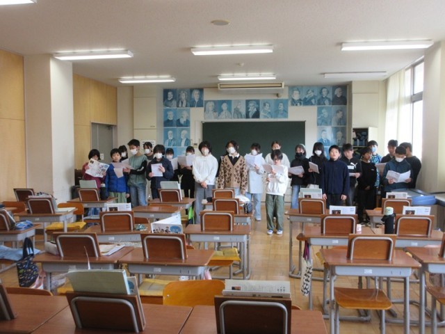 6年1組は、音楽「いのちの歌」の合唱です。卒業式に向けて、気持ちが込められてきました。聞いていて、涙が出そうになりました。卒業式は小学校最後の表現の場です。一人一人自分らしさを表現してください。