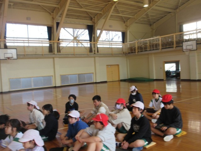 2組は、体育館で体育「アルチメット」の学習でしたが、振り返りの時間でした…。う~ん、残念。それぞれのチームの課題も明確になったようなので、次はプレイしている時間に行きたいです。