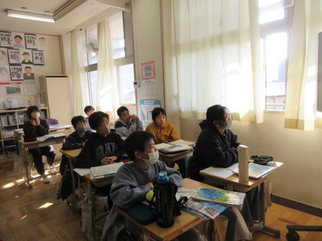 3組は、社会「空襲」についての学習です。映像を見ながら戦争の悲惨さや悲しみを感じているようでした。戦争のない平和な世の中になってほしいですね。