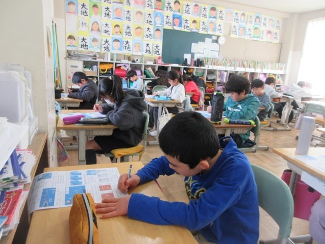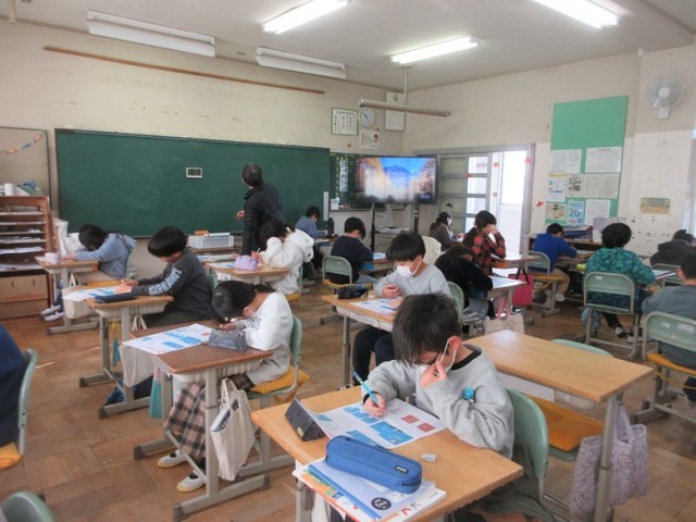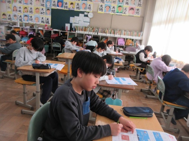2組は、理科「もののあたたまり方」のテストです。鉄、空気、水などがどのように温まっていくのかしっかり覚えていましたか?