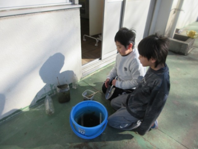 2組は、池の中の小さな生き物、ヤゴをつかまえていました。この池も取り壊しになるので少しさみしくなりますね。