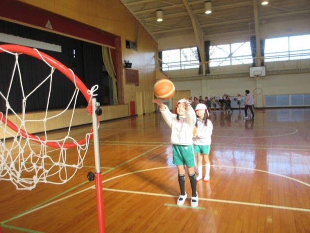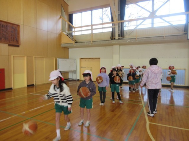 2組は、体育館で「セストボール」の学習です。ドリブルシュートの練習をしています。ボールに慣れて、スムーズにドリブルができるようになるといいですね!