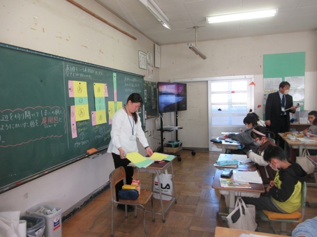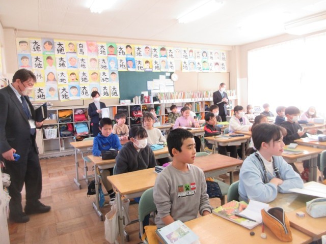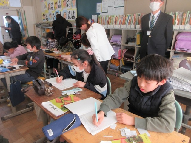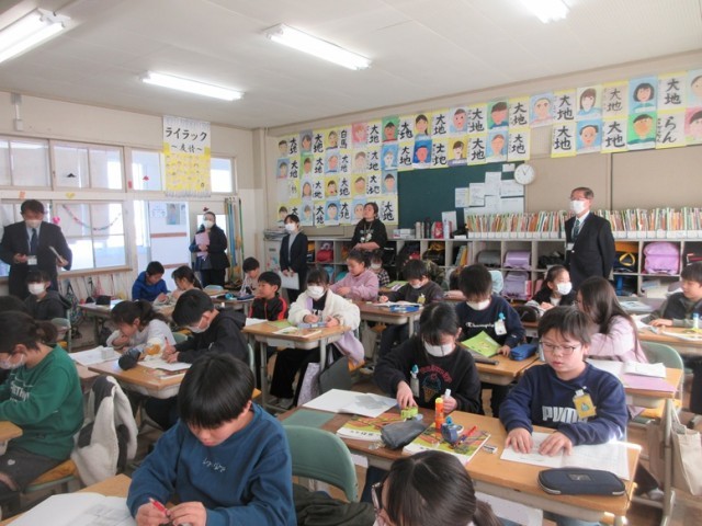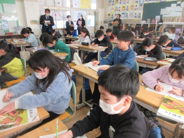 今日は、研修センターのアドバイザーの先生と指導主事の先生をお招きし、4年2組の公開授業が行われました。