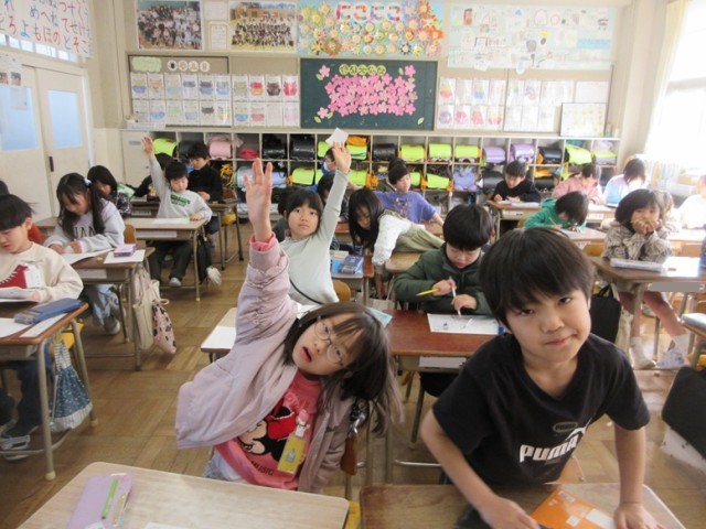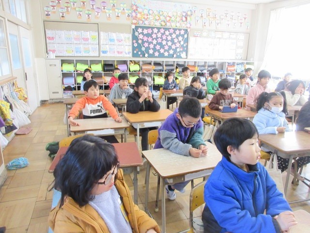 1年1組は、動画を見ながらネットモラルについて学んでいました。「まだ書き込みとかはしていないと思うけど、ネットだけじゃなくてお手紙にも悪いことは絶対に書き込みません」と先生。「でも、いいことなら書いてもいいんだよね?」と子供たち。全国的に大きな話題になっている「動画拡散」の防止については、低学年の頃からのネットモラル学習の積み重ねも必要になりますが、ご家庭でも折に触れて話題にしてみてください。