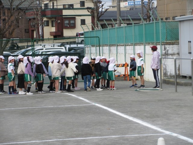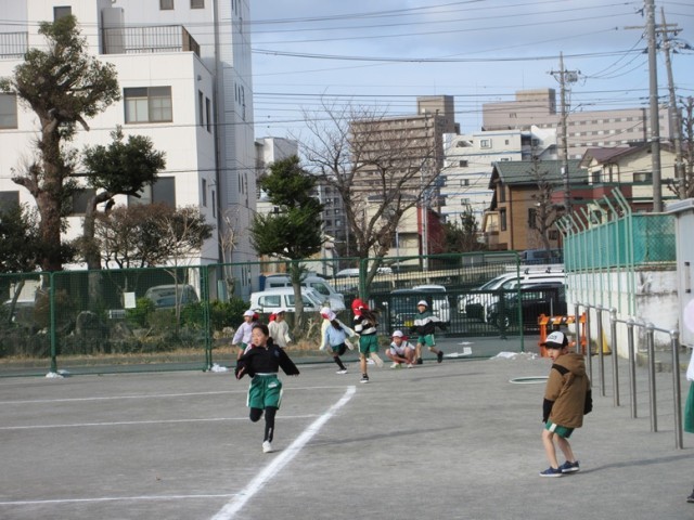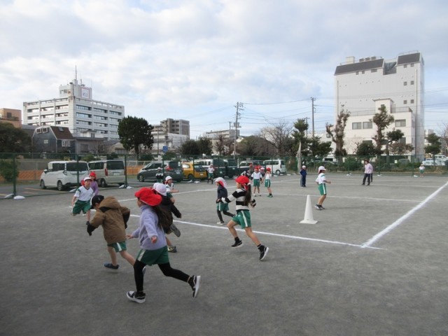 2組は、外で体育「鬼遊び」です。小さな運動場ですが、いっぱいに使って元気よく体を動かしています。
