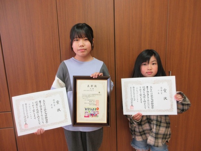 人権ポスターには5年生女子が入賞、県書き初めコンクールには、2年生と5年生の女子がそれぞれ優秀賞に輝きました。5年生の女の子はポスターと書き初めのW受賞となりました。とてもうれしく感じました。おめでとうございます。