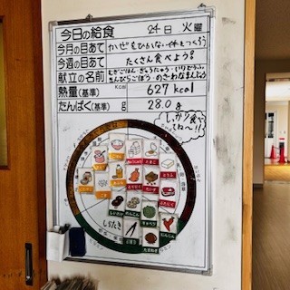 給食委員会のお当番さんが、今日の栄養ボードを仕上げつつ、メッセージを残してくれました!
