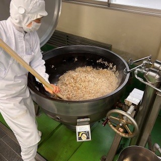 きんぴらごぼうと炒り豆腐も、大きな回転釜で焦がさないよう、崩れないよう、しっかり火を通して作りました。