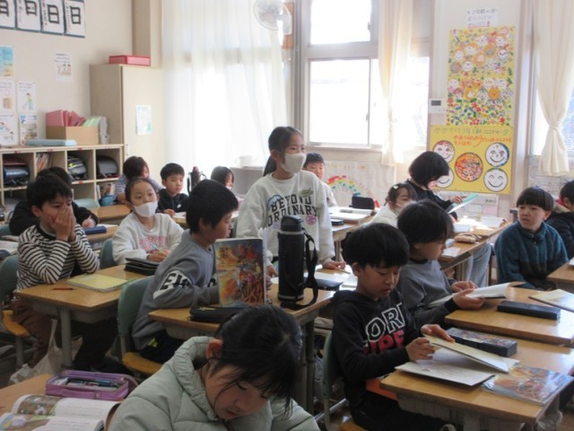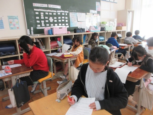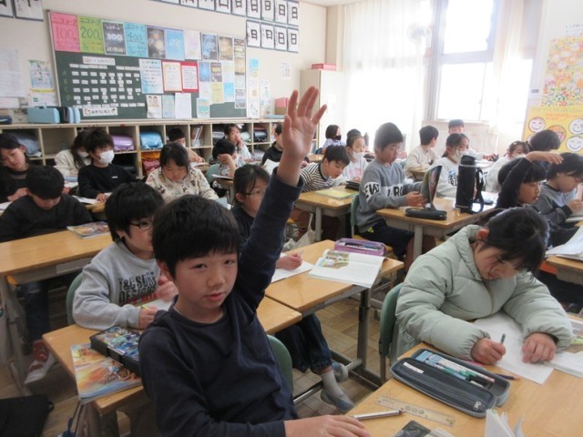 3年1組は、国語「ゆうすげ村の小さな旅館」の学習です。主人公の手紙からどんな気持ちなのかを考えています。