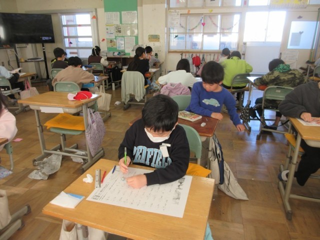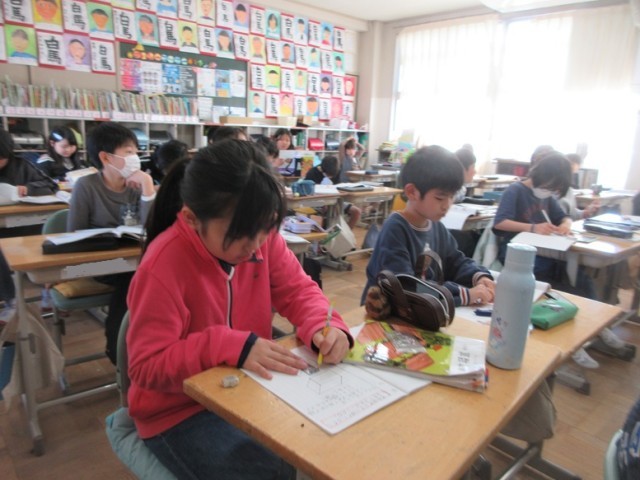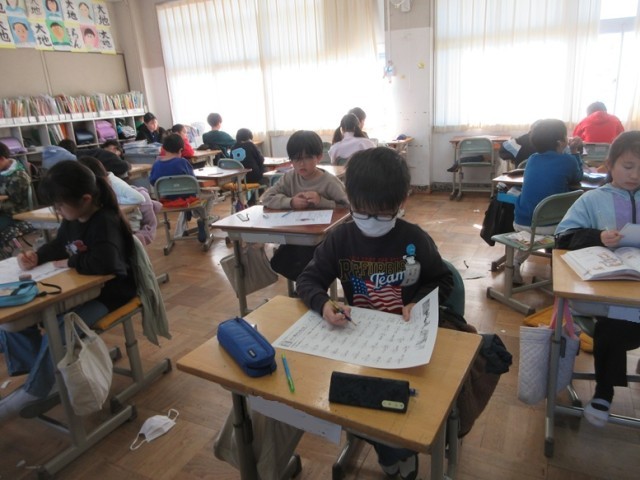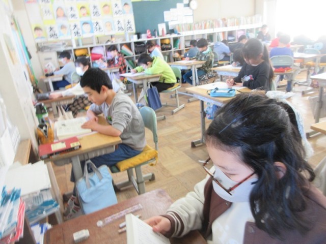 2組は、国語「四年生のまとめ」のテストと漢字テストの直しを行っていました。5年生で学習した漢字はどのくらい身についていましたか?