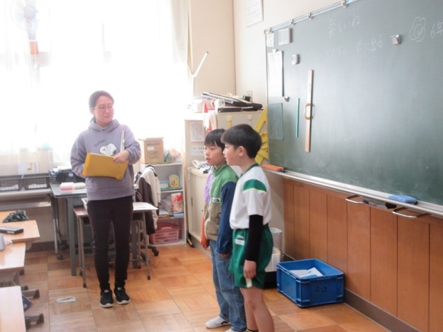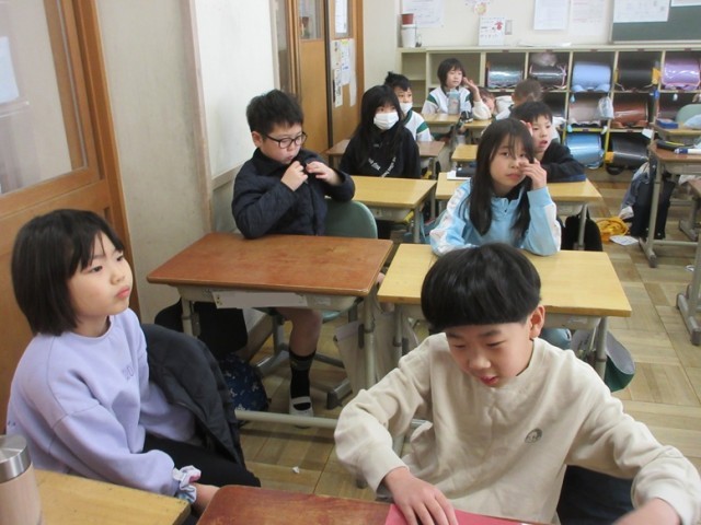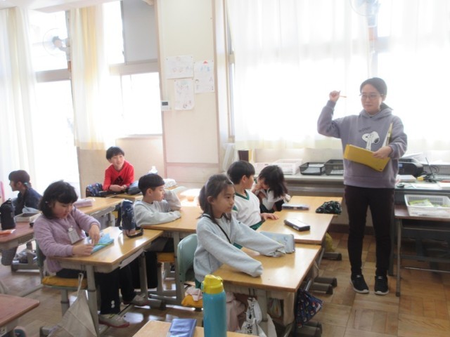 2年1組は、音楽「楽しいね」の歌のテストです。昨日、六年生を送る会で披露した曲なので、みんな、元気いっぱい歌っています。