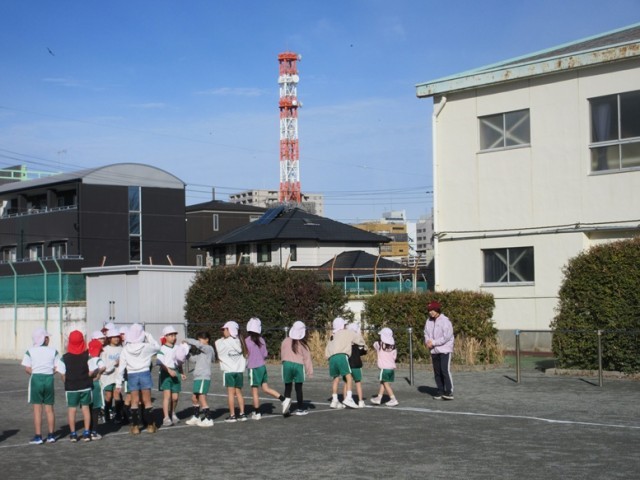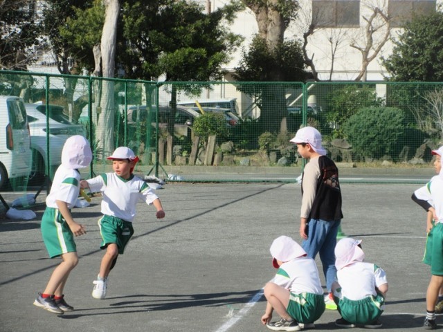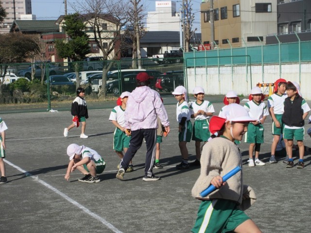 2組は、体育で男女に分かれて「リレー」をしています。「頑張れ~!」「いけるぞ~!」と自分のチームを応援しています。どっちのチームが勝ったかな?