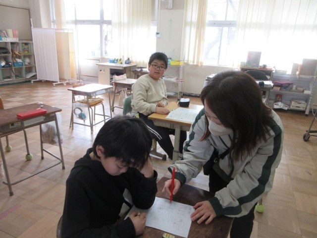 7の1組は、算数の学習です。そえぞれの進度に合った問題を解いています。「できた!」という、うれしそうな声がいろんなところから聞こえてきました。「できた!」をたくさん積み重ねていきましょうね!