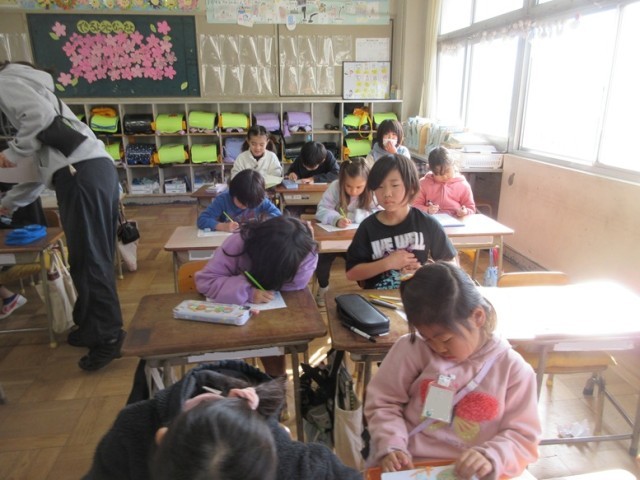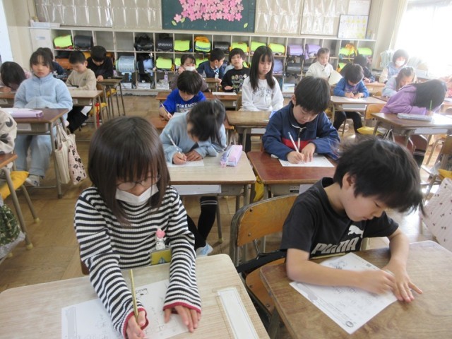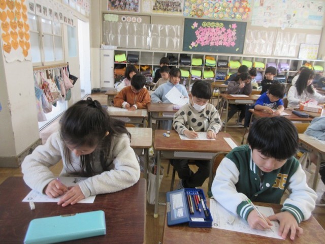 2組は、国語「スイミー」の漢字小テストです。漢字は正しく書けたかな?みんな、集中して取り組んでいます。