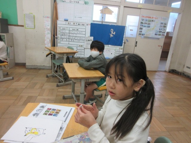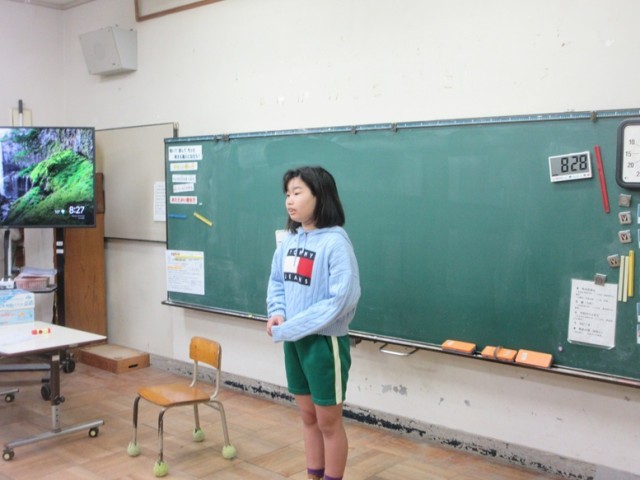 7の1組は、朝の会のスピーチをしていました。みんなの前で話をし、質問にもしっかり答えていました。この後、予定を書きました。